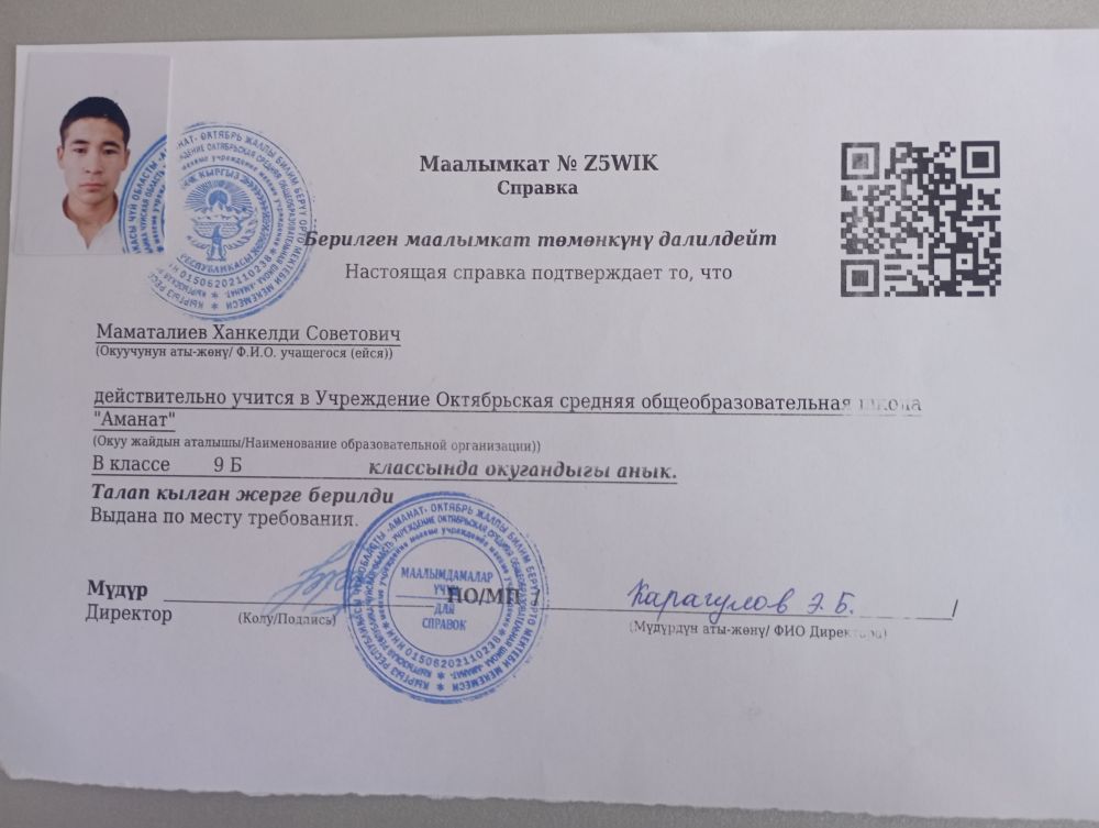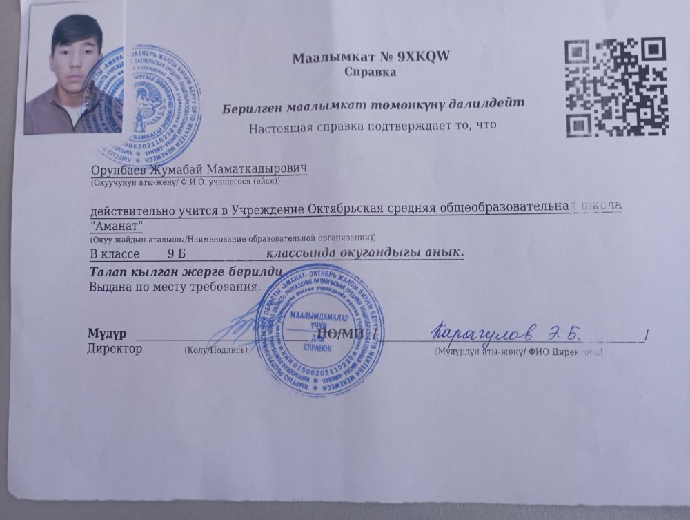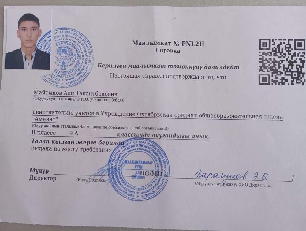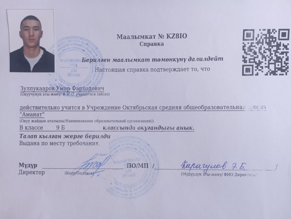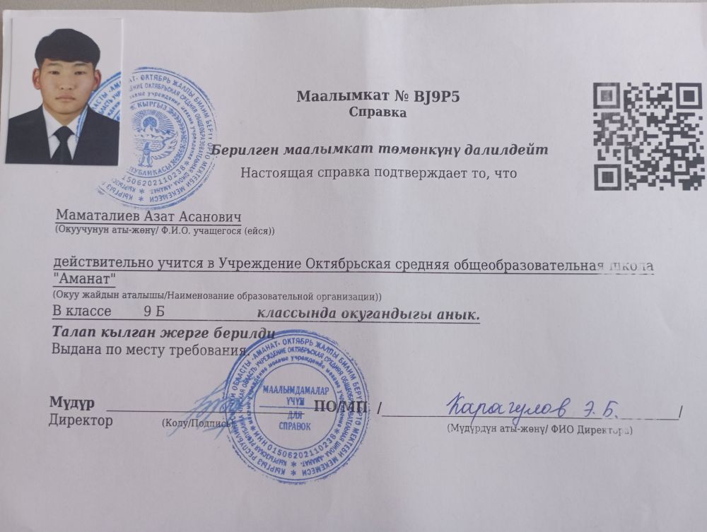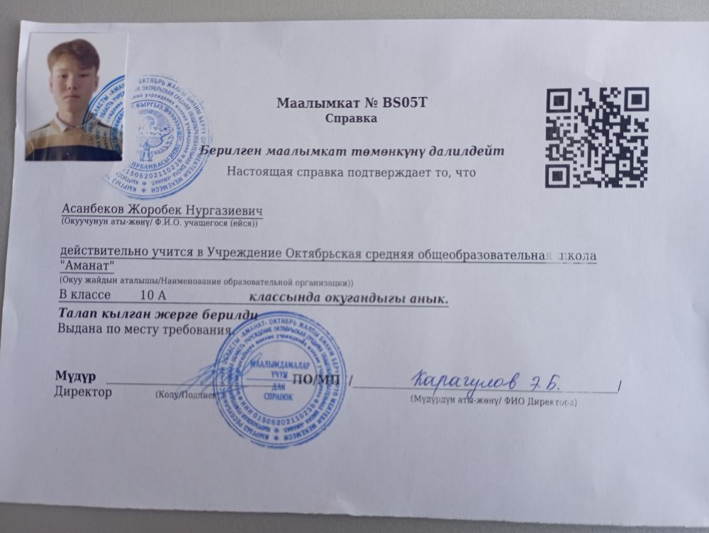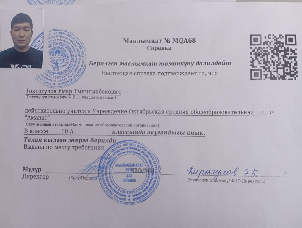 | 1 |  | Токтогулов Умар | 2008-09-15 | 10 |