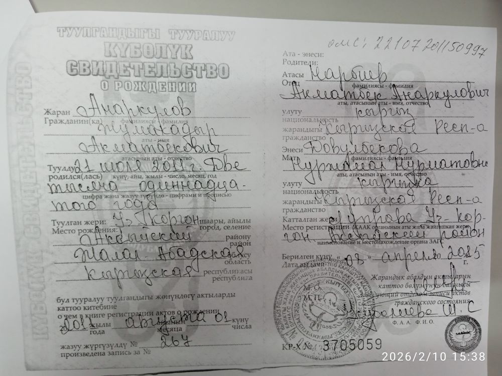 Кубанычбеков Жумадыл | 2010-06-18 | 9 |