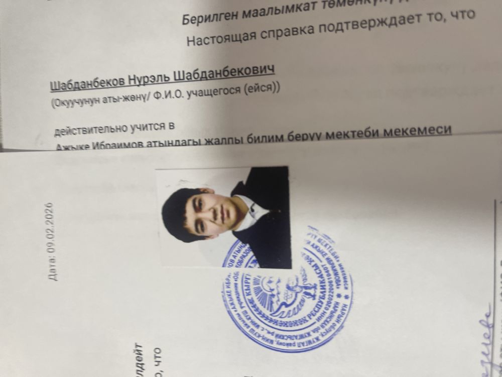 | Школа | СШ имени А.ИБРАИМОВА |