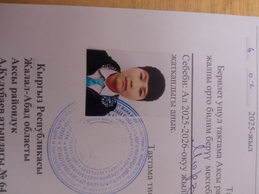 | Школа | ОСНОВНАЯ ОБРАЗОВАТЕЛЬНАЯ ШКОЛА имени АСАНБЕКА КУЛУБАЕВА №64 |