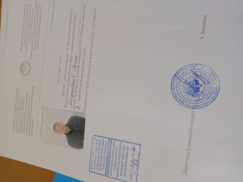 | Школа | СШ «ЖАНЫ-ТАЛАП» имени ТОКТОРБАЯ КУЛМАМАТОВА |