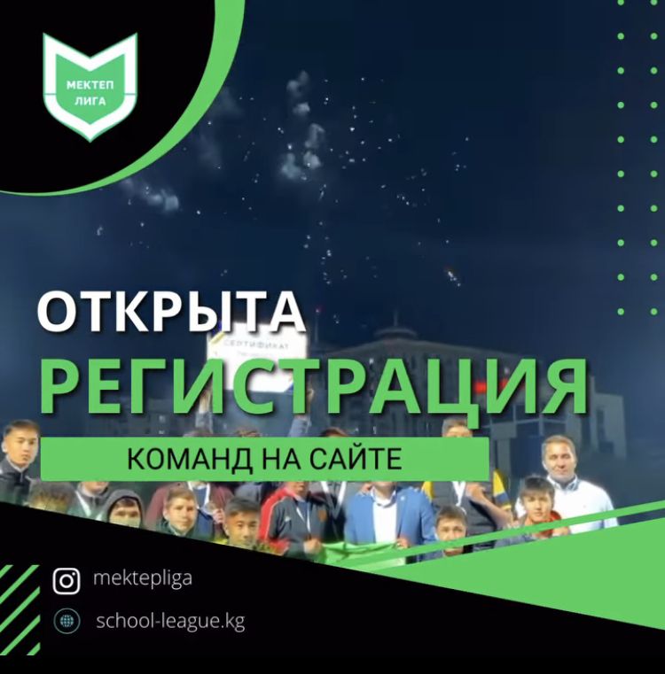 Открыта регистрация, и продолжается до 5 ноября! Совсем скоро начнутся игры и возможности, которые покажут всему Кыргызстану какая команда сильная из всех! На данный момент зарегистрировалось более 1085+ команд со всего Кыргызстана по 4 видам спорта Это футбол, волейбол , баскетбол и новый вид спорта который добавили в этом году Шахматы! Тысячи учеников Кыргызстана на данный моментр тренируются для достижения чего-то великого Желаем удачи каждому! Наблюдайте за инстаграм страничкой чтобы быть в курсе всех новостей школьной лиги!
